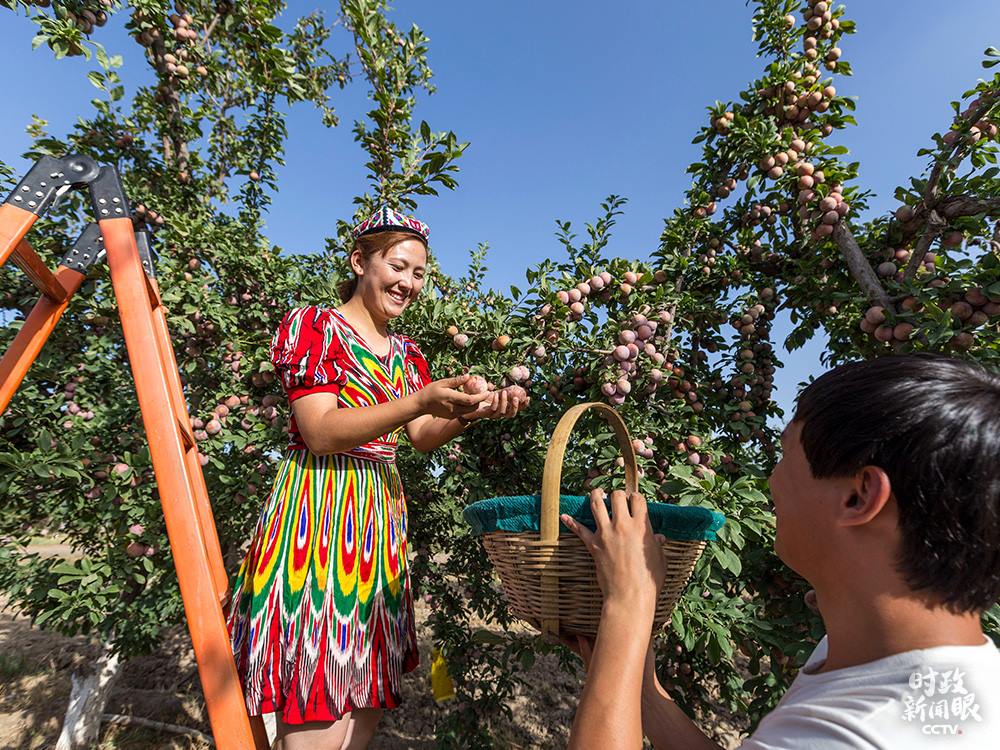 △新疆阿克陶縣村民在林果基地為桃樹打枝,林間同時(shí)套種了西瓜。