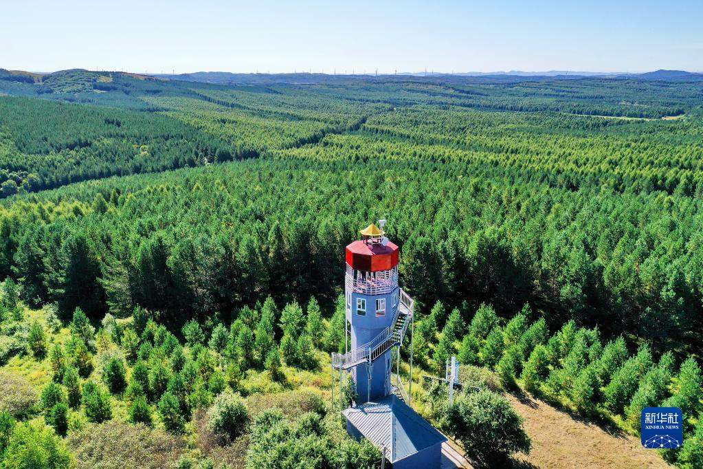 河北塞罕壩機(jī)械林場(chǎng)內(nèi)的望海樓(8月23日攝,無(wú)人機(jī)照片)。新華社記者牟宇攝
