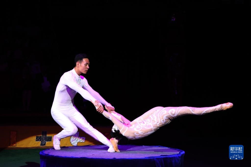2019年9月4日,在蒙古國(guó)首都烏蘭巴托,中國(guó)河北省滄州市雜技團(tuán)演員表演雜技。新華社發(fā)(蘇力雅/攝)