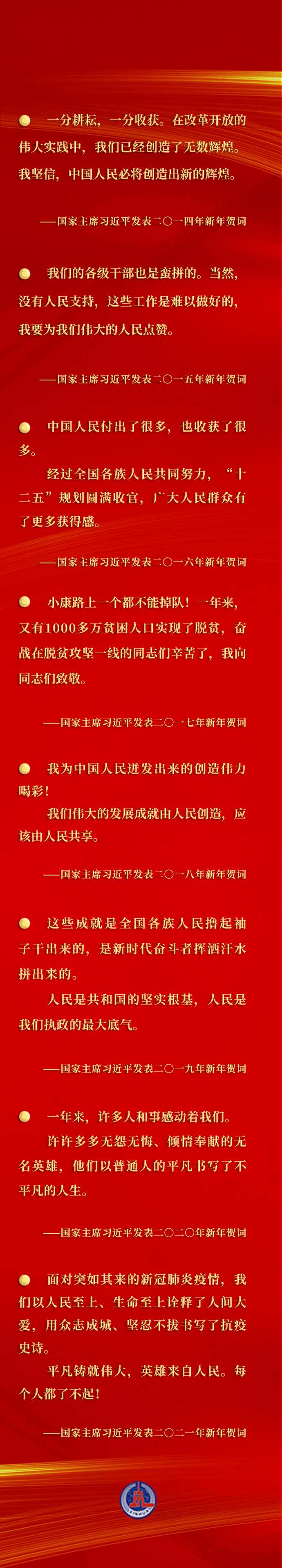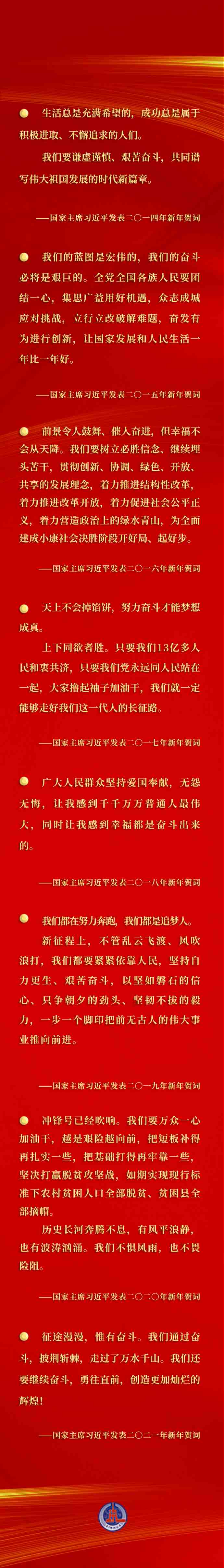 每年的新年賀詞,都在激勵我們乘勢而上、接續(xù)奮斗,匯聚激勵各族人民團結(jié)一心、并肩奮斗的強大合力。