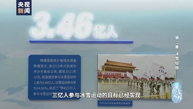忽如一夜春風(fēng)來(lái),千城萬(wàn)地雪花開(kāi),冰雪運(yùn)動(dòng)早已越過(guò)山海關(guān),走向全國(guó)。中國(guó)的冰場(chǎng)和雪館蓬勃發(fā)展,向南,向西,向東,從塞北雪國(guó)到江南水鄉(xiāng),從西部邊陲到東部沿海,冰雪之花華麗綻放。根據(jù)《“帶動(dòng)三億人參與冰雪運(yùn)動(dòng)”統(tǒng)計(jì)調(diào)查報(bào)告》,從2015年北京申冬奧成功到2021年10月間,全國(guó)冰雪運(yùn)動(dòng)參與人數(shù)達(dá)到3.46億人,“三億人參與冰雪運(yùn)動(dòng)”已經(jīng)從愿景變?yōu)楝F(xiàn)實(shí)。