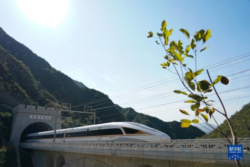 圖為2020年10月6日,一列復(fù)興號高鐵列車穿過京張高鐵居庸關(guān)隧道。新華社記者鞠煥宗攝