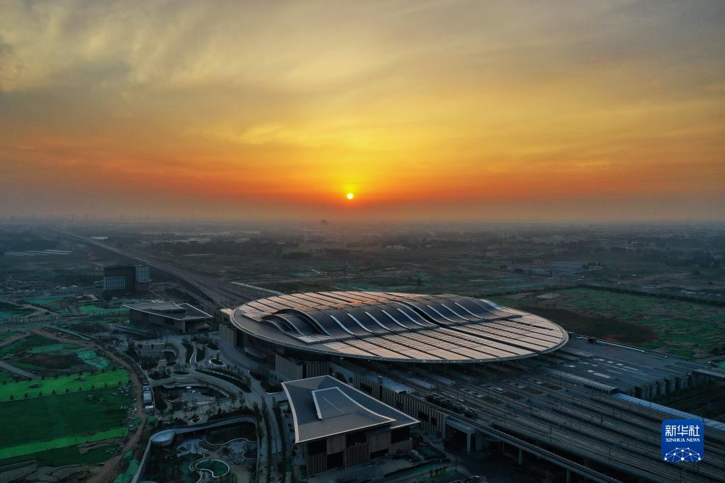 這是2021年7月1日拍攝的京雄城際鐵路雄安站(無人機照片)。新華社記者 牟宇 攝