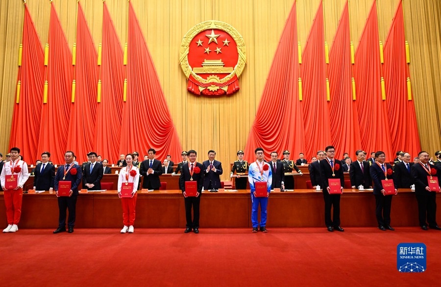 韓正宣讀《中共中央、國務(wù)院關(guān)于表彰北京冬奧會(huì)、冬殘奧會(huì)突出貢獻(xiàn)集體和突出貢獻(xiàn)個(gè)人的決定》。決定指出,為隆重表彰先進(jìn)典型,激勵(lì)全黨全國各族人民為全面建設(shè)社會(huì)主義現(xiàn)代化國家而努力奮斗,黨中央、國務(wù)院決定,授予國家速滑館場(chǎng)館運(yùn)行團(tuán)隊(duì)等148個(gè)集體“北京冬奧會(huì)、冬殘奧會(huì)突出貢獻(xiàn)集體”稱號(hào);授予蘇翊鳴等147名同志、追授鄧小嵐同志“北京冬奧會(huì)、冬殘奧會(huì)突出貢獻(xiàn)個(gè)人”稱號(hào)。