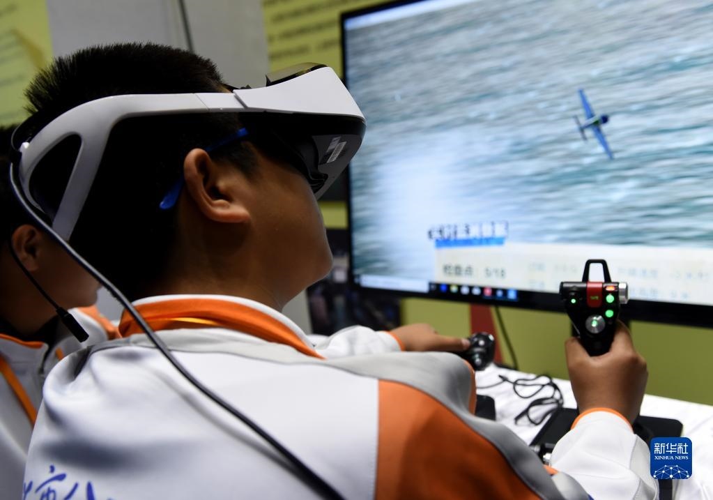 北京市八一學校的學生在北京市中小學生特色科技活動展示上體驗VR技術(shù)(2018年11月24日攝)。新華社記者 羅曉光 攝