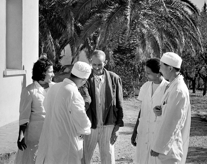 1966年12月14日,中國醫(yī)療隊與一名阿爾及利亞患者交談。新華社發(fā)
