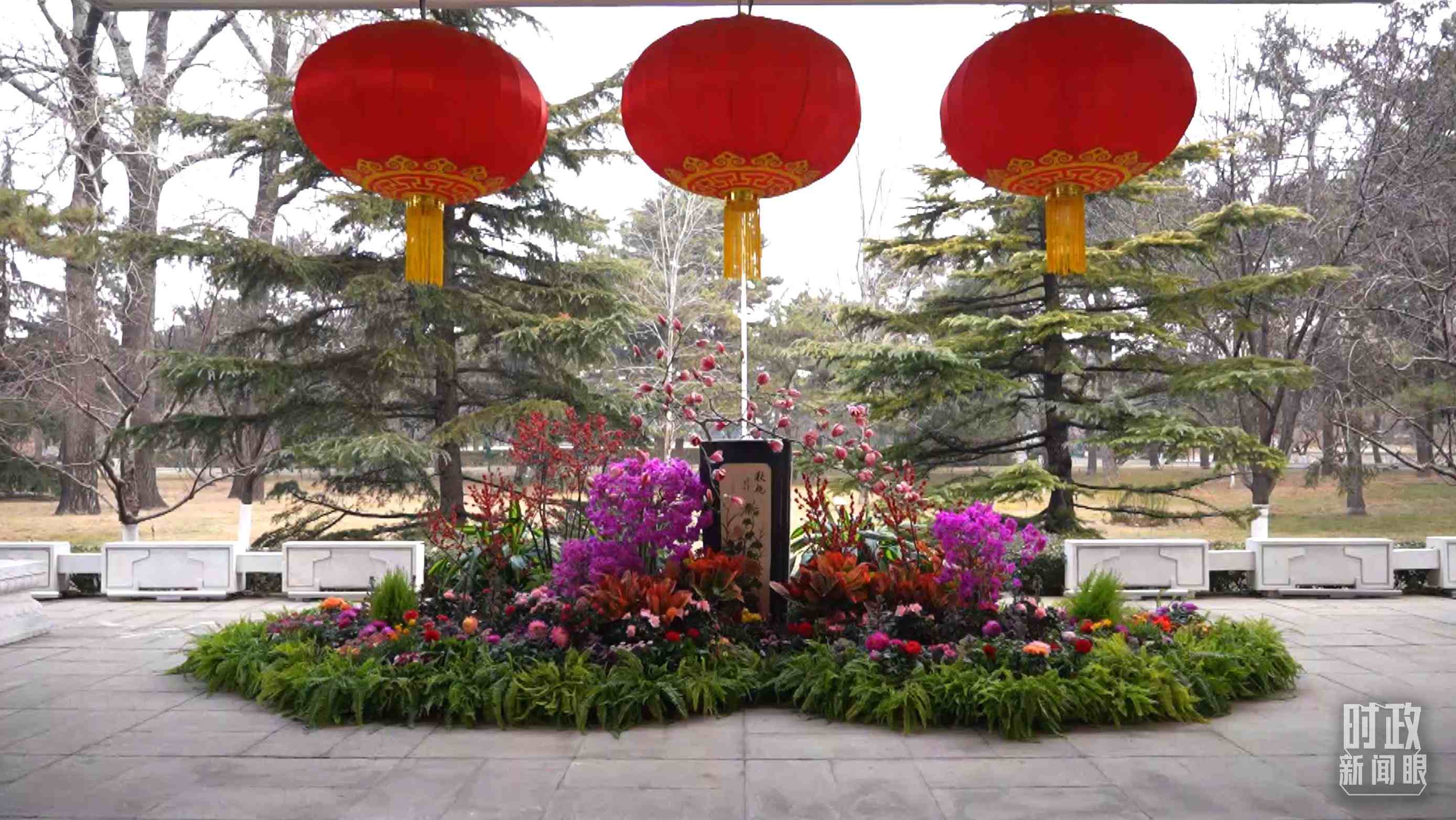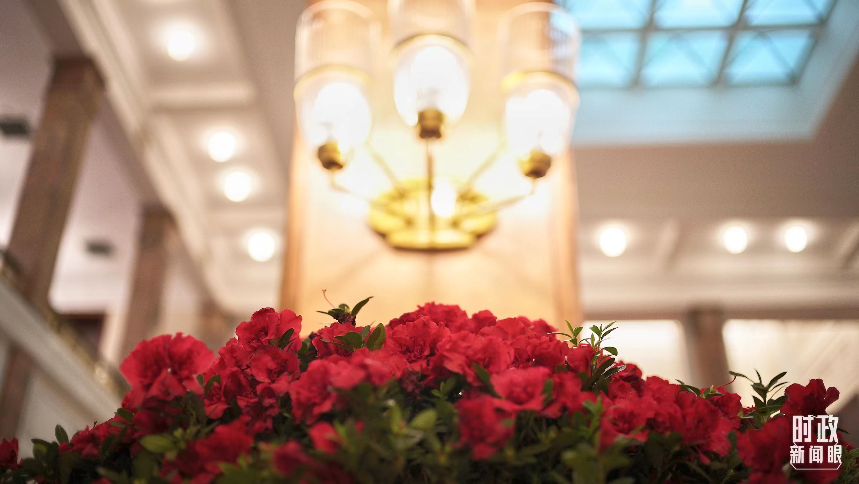 △人民大會(huì)堂北大廳外,杜鵑花正在綻放。(總臺(tái)央視記者彭漢明拍攝)