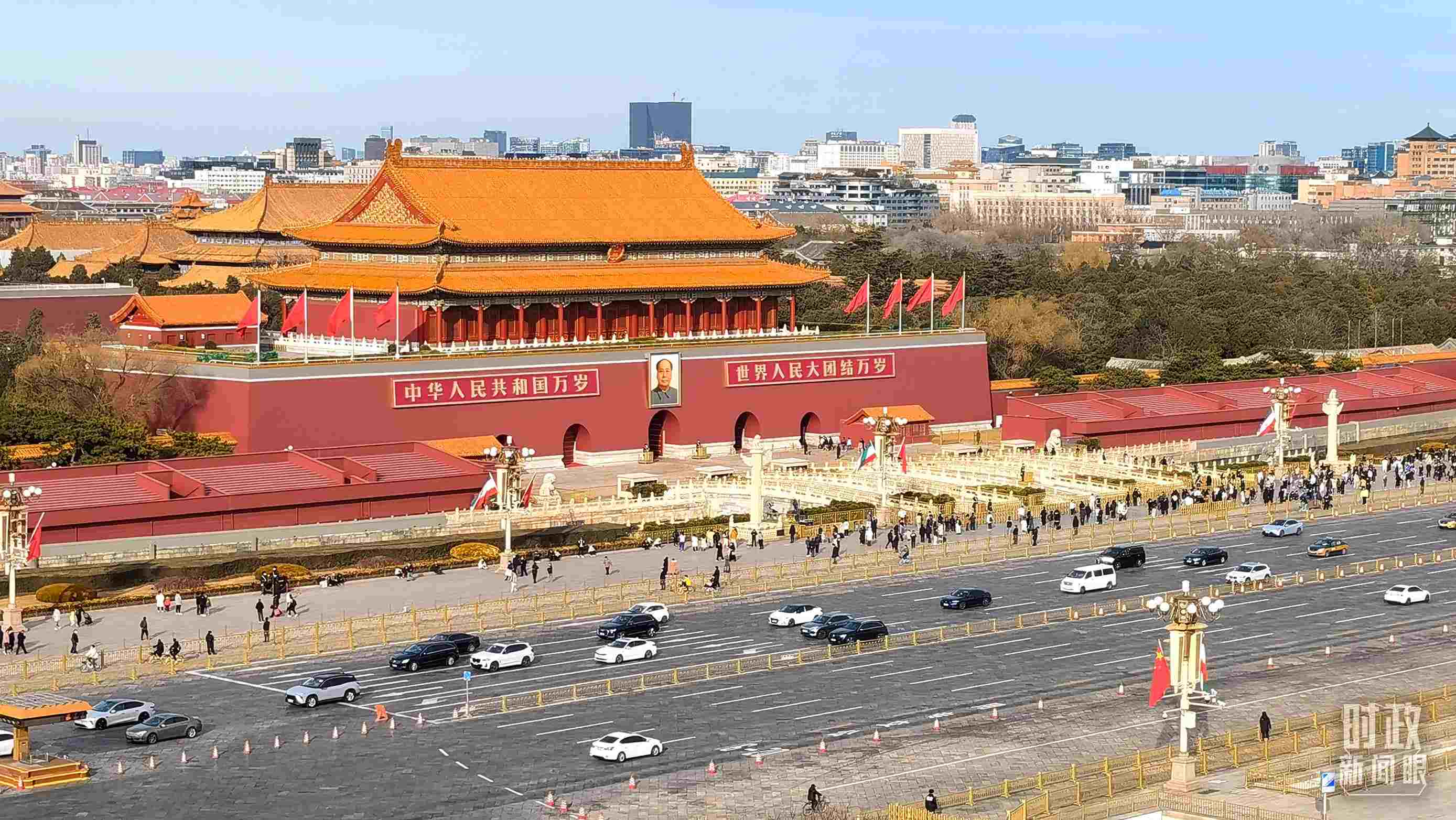 △習(xí)近平與萊希會(huì)談當(dāng)天,長(zhǎng)安街兩側(cè)懸掛中伊兩國(guó)國(guó)旗。(總臺(tái)央視記者韓銳拍攝)