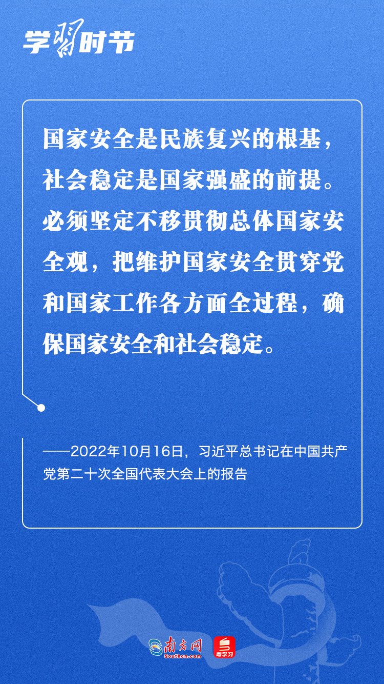 習(xí)近平總書記在黨的二十大報(bào)告中指出:“國(guó)家安全是民族復(fù)興的根基,社會(huì)穩(wěn)定是國(guó)家強(qiáng)盛的前提?!?月15日是我國(guó)第八個(gè)全民國(guó)家安全教育日。習(xí)近平總書記在2016年首個(gè)全民國(guó)家安全教育日到來之際曾強(qiáng)調(diào),實(shí)現(xiàn)中華民族偉大復(fù)興的中國(guó)夢(mèng),保證人民安居樂業(yè),國(guó)家安全是頭等大事。