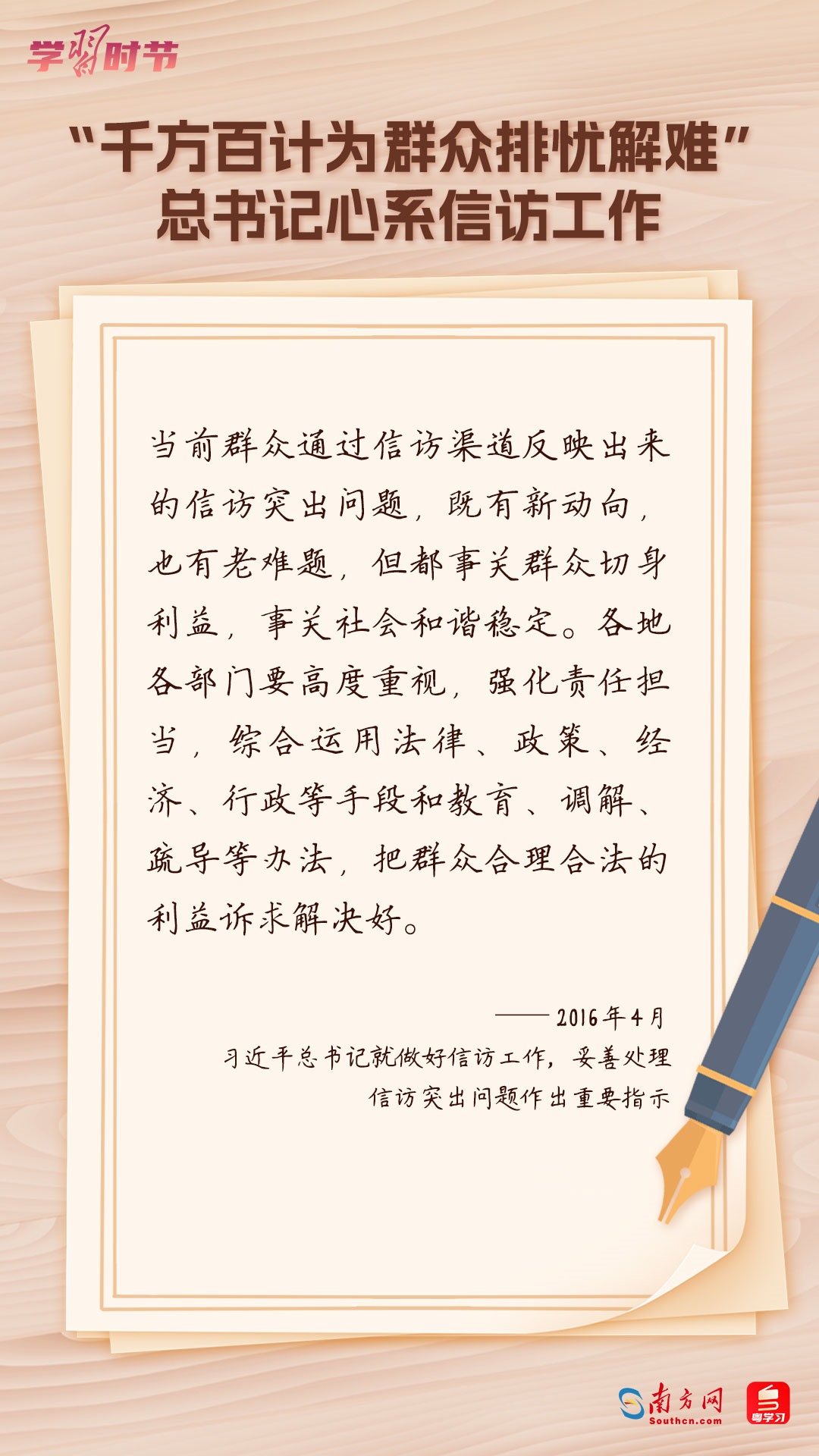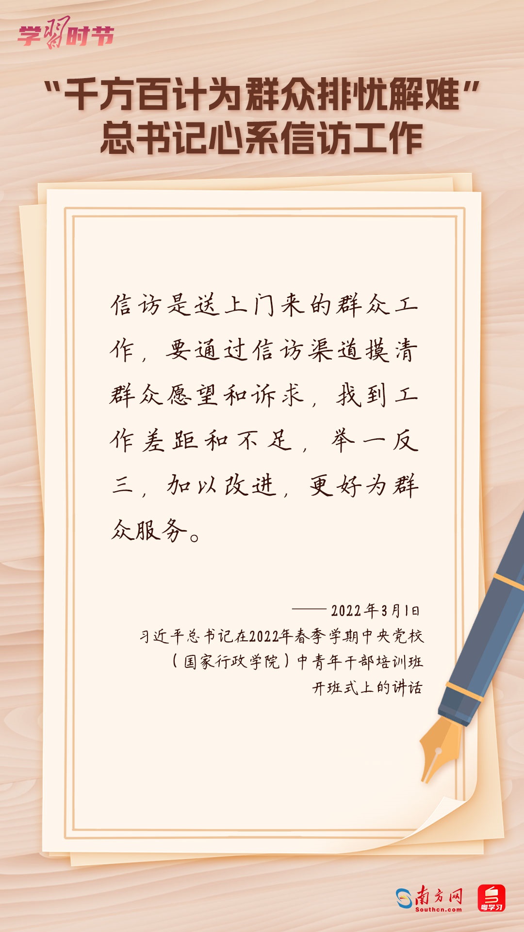 2022年5月1日,中共中央、國務(wù)院印發(fā)的《信訪工作條例》正式實施。《信訪工作條例》以習(xí)近平新時代中國特色社會主義思想為指導(dǎo),深入貫徹習(xí)近平總書記關(guān)于加強和改進(jìn)人民信訪工作的重要思想,總結(jié)黨長期以來領(lǐng)導(dǎo)和開展信訪工作經(jīng)驗特別是黨的十八大以來信訪工作制度改革成果,堅持和加強黨對信訪工作的全面領(lǐng)導(dǎo),理順信訪工作體制機制,是新時代信訪工作的基本遵循。今年5月1日是《信訪工作條例》實施一周年,“學(xué)習(xí)時節(jié)”整理摘錄習(xí)近平總書記關(guān)于信訪工作的重要講話和重要指示批示,與您一同學(xué)習(xí)。