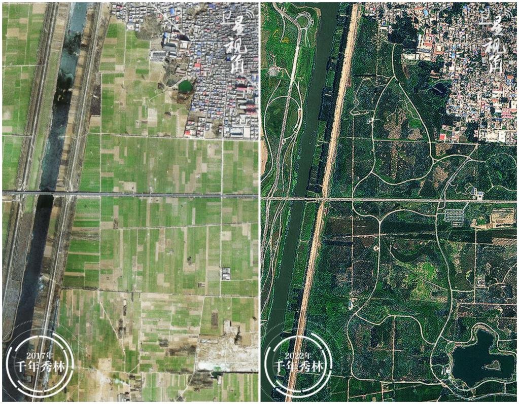 未建城,先植綠,千年大計(jì)從“千年秀林”開始。2017年11月13日,雄安新區(qū)“千年秀林”9號(hào)地塊栽下第一棵樹。如今,“千年秀林”工程累計(jì)造林47萬畝,悅?cè)莨珗@等一批高品質(zhì)休閑設(shè)施投用,雄安新區(qū)森林覆蓋率由11%提高到34%,營造出“城在林中,人在景中”的意趣。