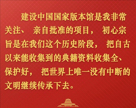 習近平強調(diào),建設中國國家版本館,是文明大國建設的基礎工程,是功在當代、利在千秋的標志性文化工程。