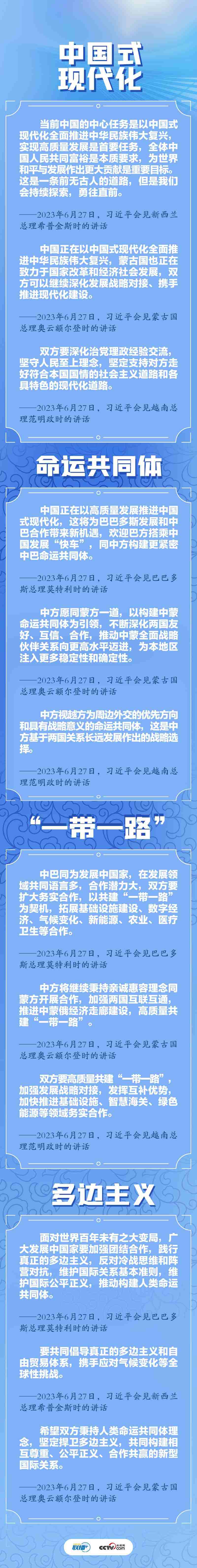 娓娓道出走和平發(fā)展的中國式現(xiàn)代化道路、推動中國同各有關(guān)國家構(gòu)建命運(yùn)共同體、指引高質(zhì)量共建“一帶一路”、堅定捍衛(wèi)多邊主義……一天四場雙邊會見,四個關(guān)鍵詞讓世界看到了大國擔(dān)當(dāng)。