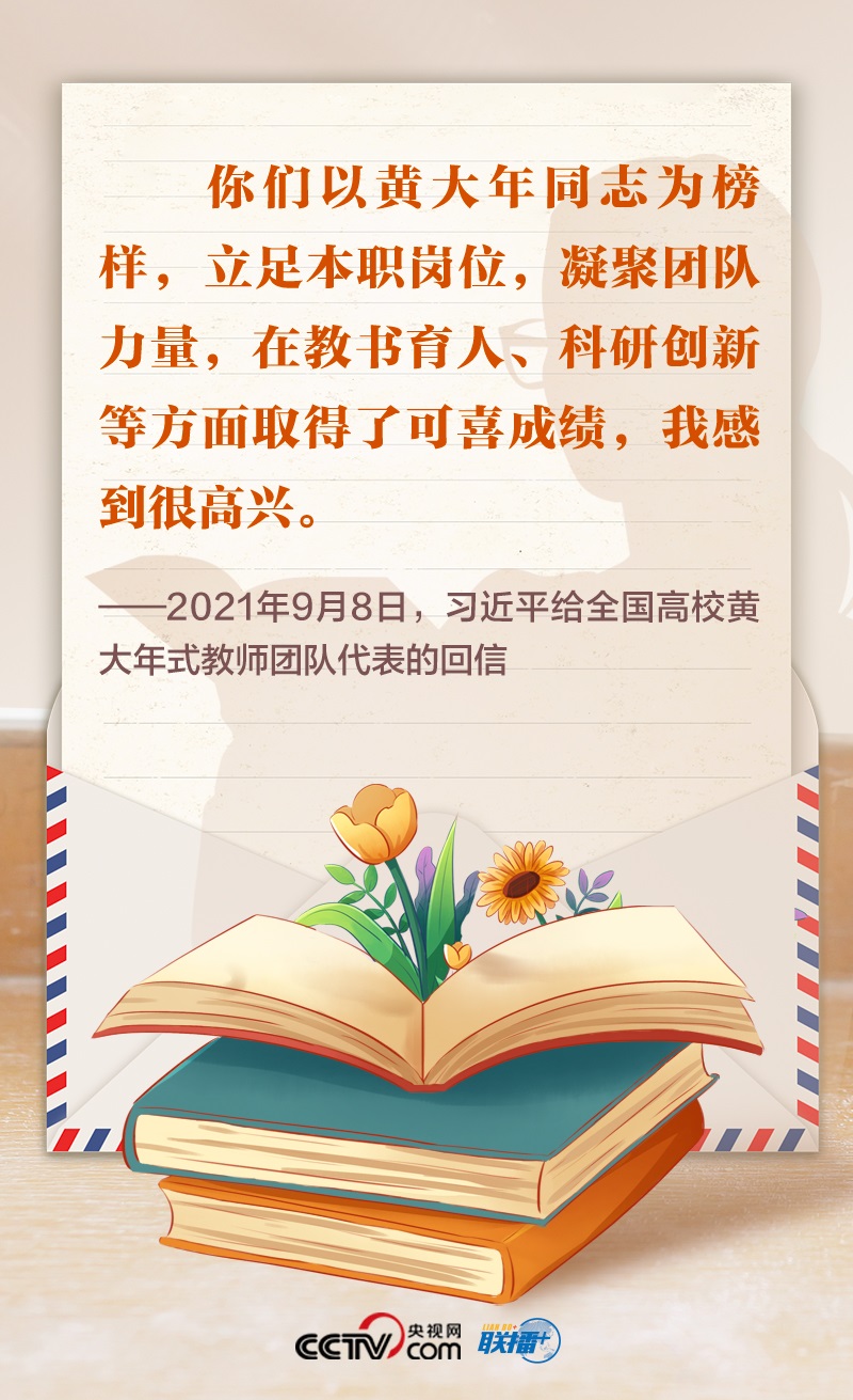 2021年,首批黃大年式教師團隊的代表給總書記寫信,匯報教學(xué)、科研等工作情況,表達了堅守教育報國理想、為民族復(fù)興貢獻力量的決心。總書記回信肯定了大家的工作成效,勉勵大家繼續(xù)學(xué)習(xí)弘揚黃大年同志等優(yōu)秀教師的高尚精神,立德修身,潛心治學(xué),開拓創(chuàng)新,真正把為學(xué)、為事、為人統(tǒng)一起來,當(dāng)好學(xué)生成長的引路人。