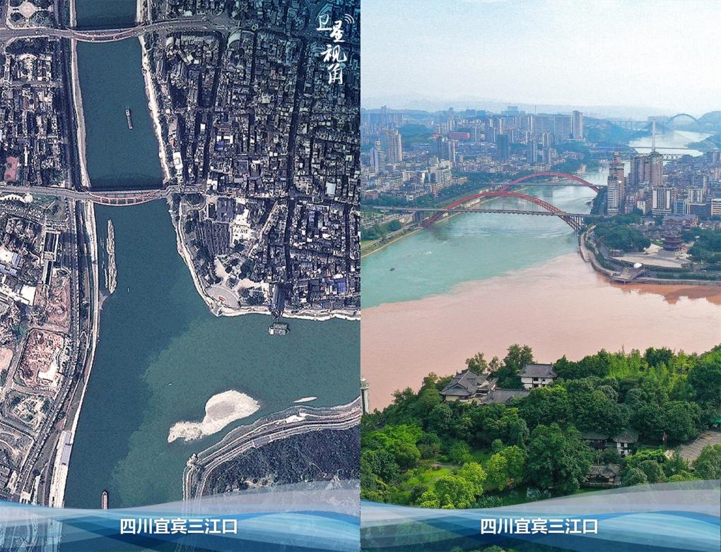長江、金沙江、岷江在宜賓市主城區(qū)交匯,形成了三江匯流的壯闊景象。習(xí)近平來到三江口,眺望三江交匯處,聽取當(dāng)?shù)赝七M(jìn)長江流域生態(tài)修復(fù)保護(hù)、實(shí)施長江水域禁捕退捕等情況介紹。