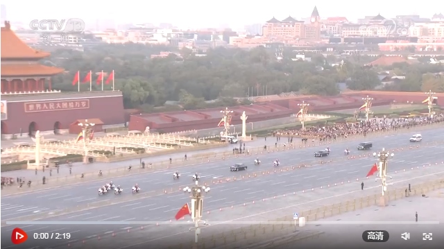 兩國元首回到檢閱臺觀看儀仗隊分列式。