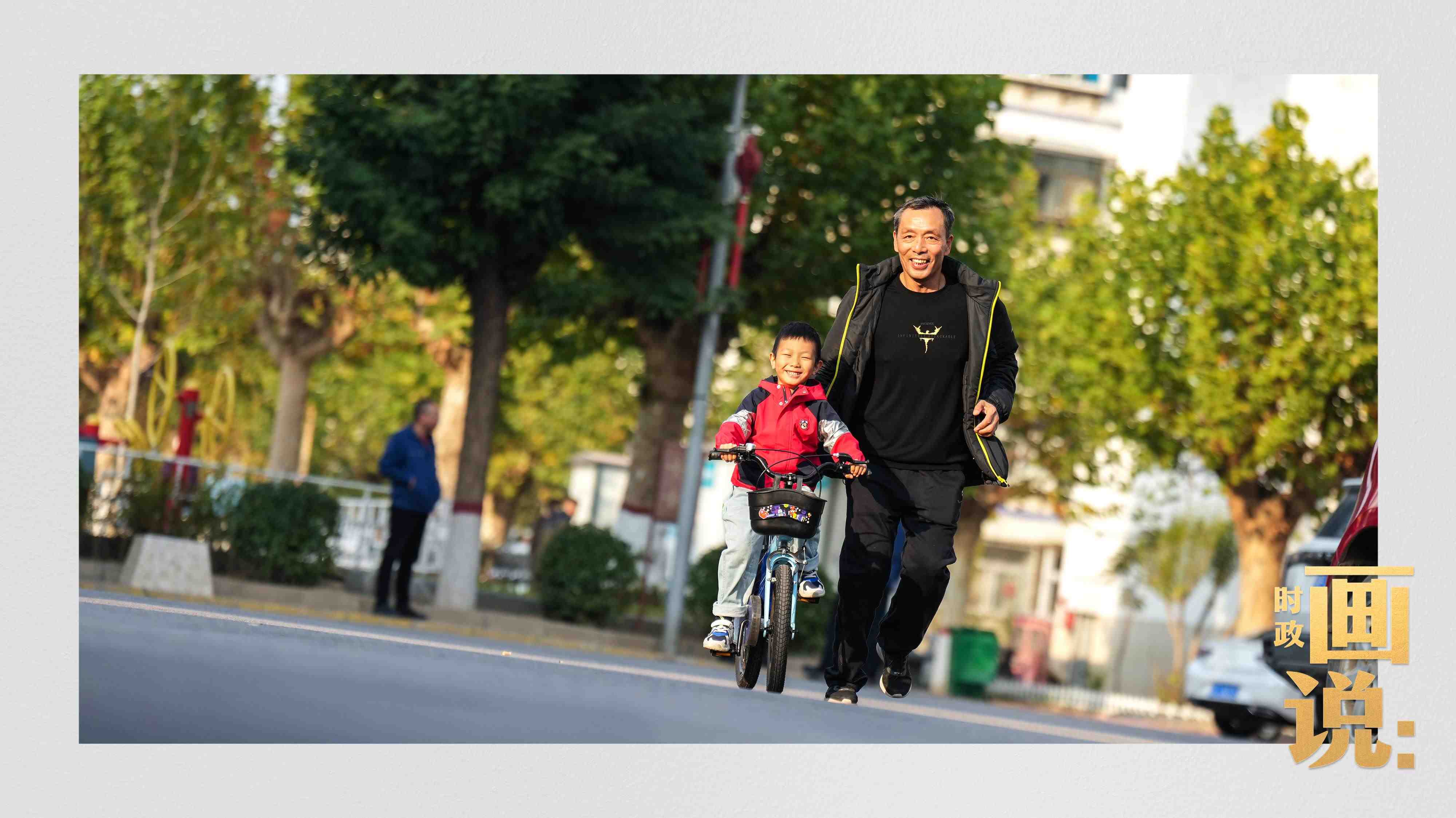 △學(xué)騎自行車的爺孫倆其樂融融。冬日的暖陽留在身上,會(huì)心的笑容掛在臉上。永濟(jì)秀園小區(qū),涿州。