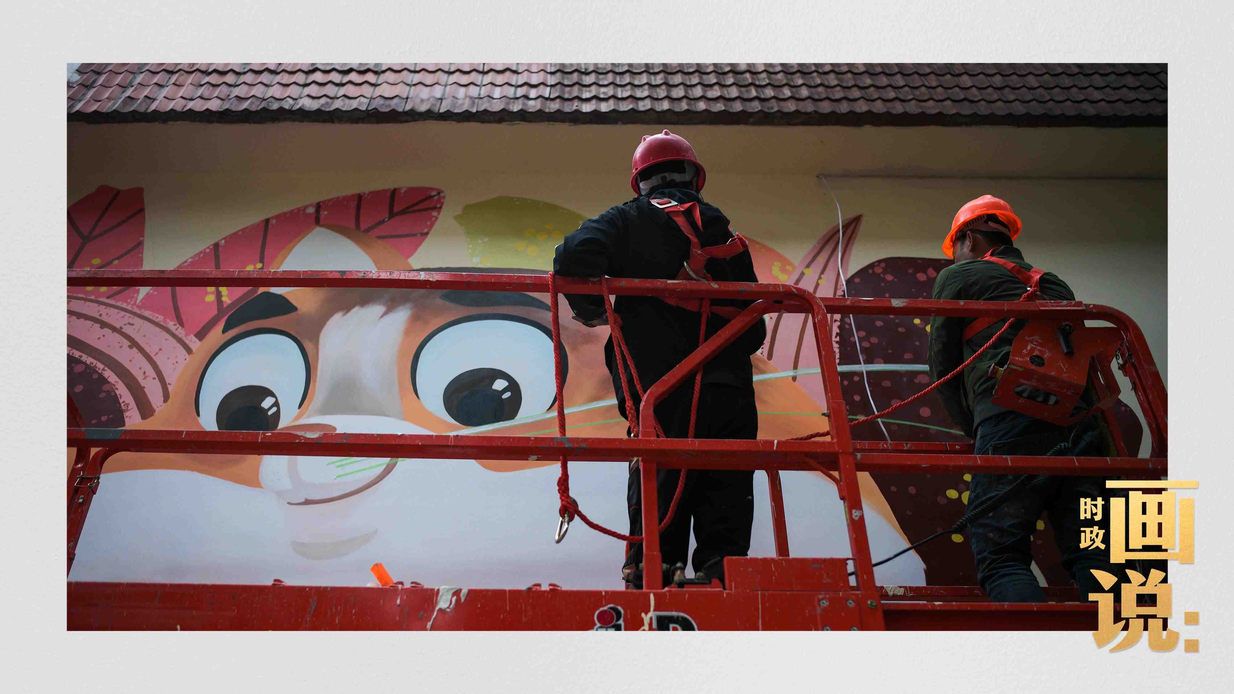 △工人在街道外墻上噴繪畫(huà)作,一座城市的藝術(shù)氣息濃縮于街巷的細(xì)節(jié)里。南昌路,上海。