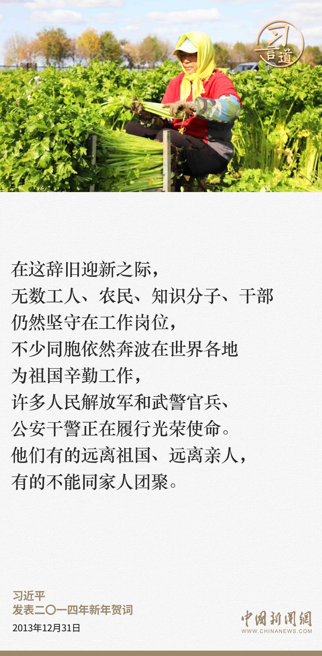 平凡鑄就偉大,英雄來(lái)自人民。自2013年歲末起,國(guó)家主席習(xí)近平連續(xù)10年發(fā)表新年賀詞。在新年賀詞中,習(xí)近平總會(huì)為奮斗的中國(guó)人點(diǎn)贊、加油鼓勁,勉勵(lì)大家“征途漫漫,惟有奮斗”。