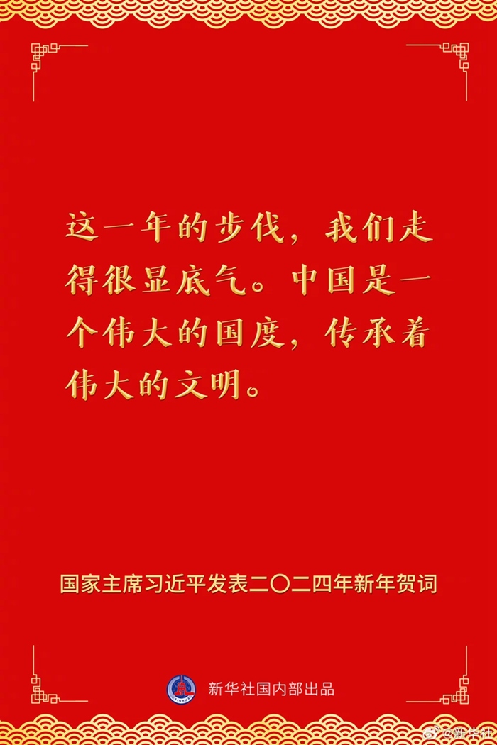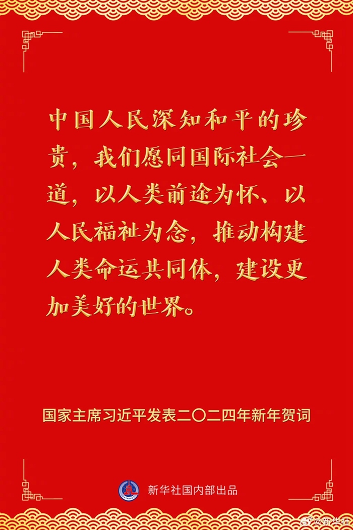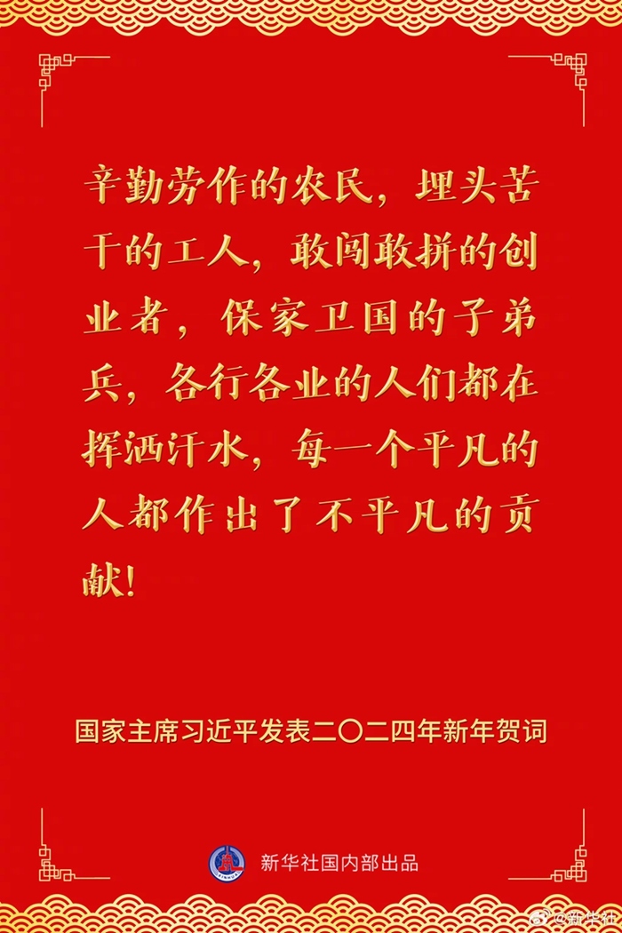 國家主席習(xí)近平發(fā)表二〇二四年新年賀詞,一起來看金句。