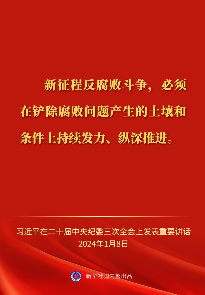 ??中共中央總書(shū)記、國(guó)家主席、中央軍委主席習(xí)近平8日上午在中國(guó)共產(chǎn)黨第二十屆中央紀(jì)律檢查委員會(huì)第三次全體會(huì)議上發(fā)表重要講話,一起來(lái)看金句?! ?/p>
