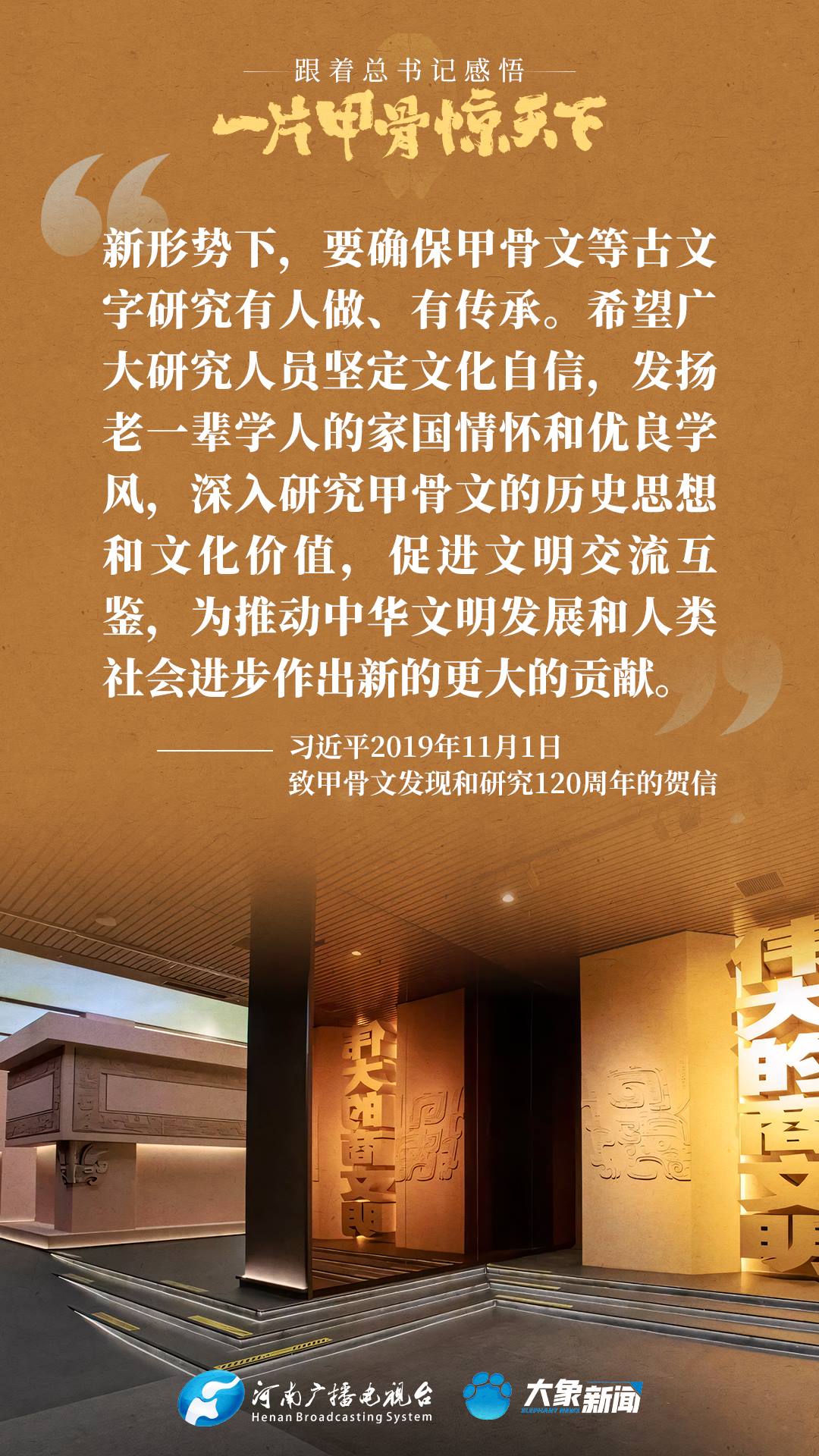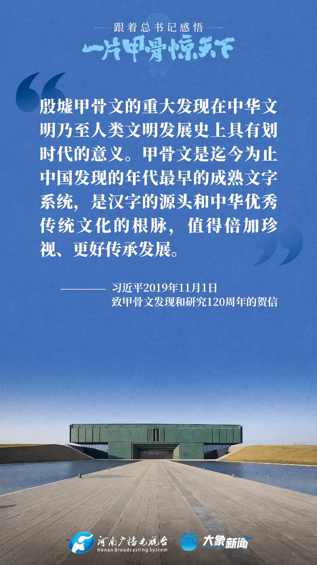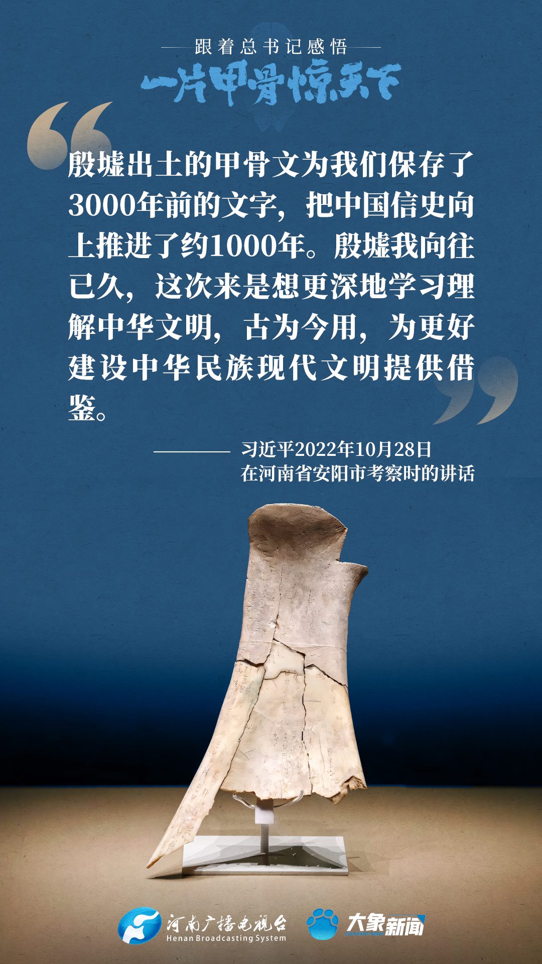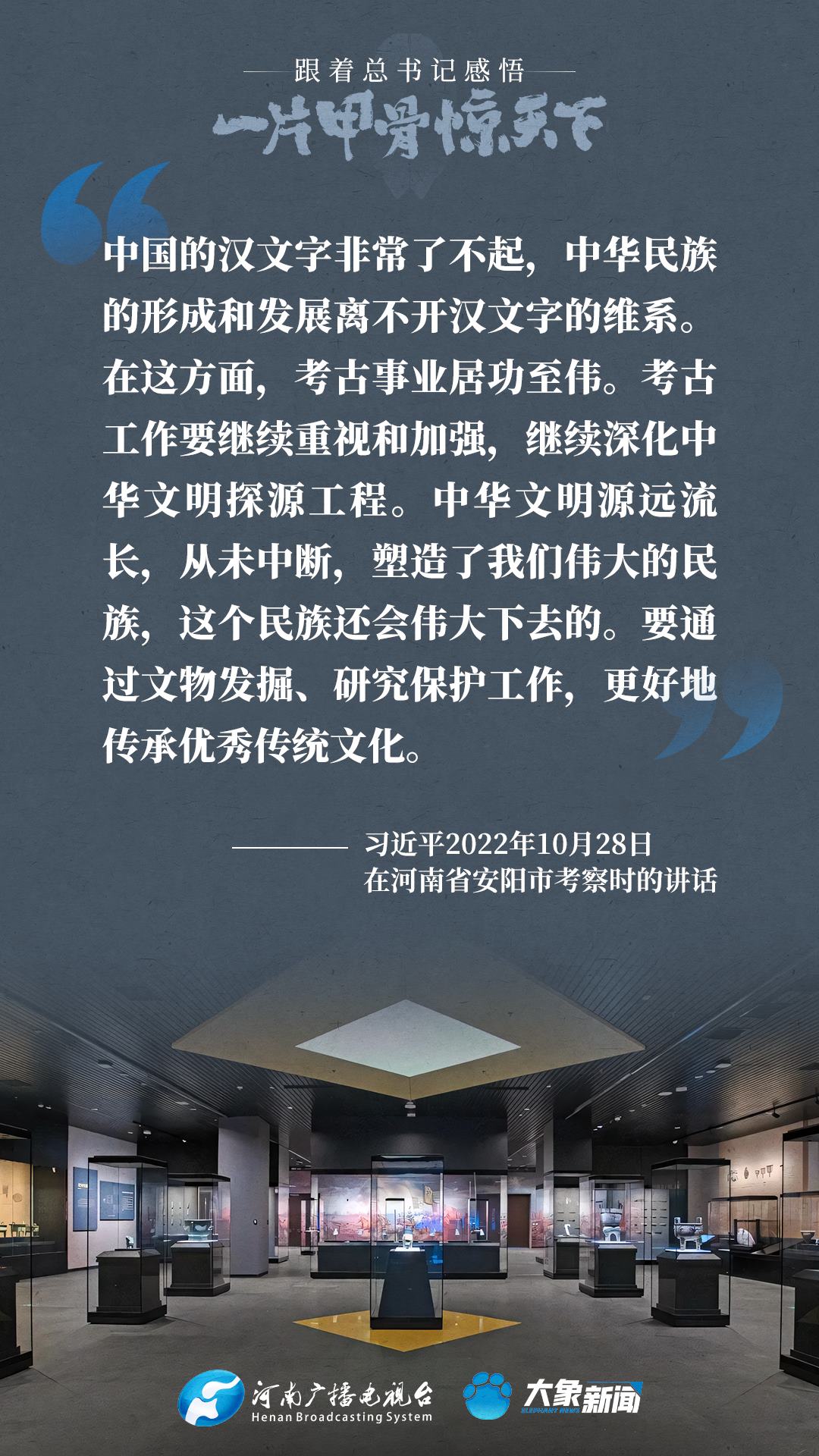 黨的十八大以來,習(xí)近平總書記多次就殷墟和甲骨文保護(hù)研究利用工作作出重要講話重要指示,為我們堅定文化自信,傳承發(fā)展中華優(yōu)秀傳統(tǒng)文化提供了根本遵循。大象新聞邀您一起回顧、學(xué)習(xí)。