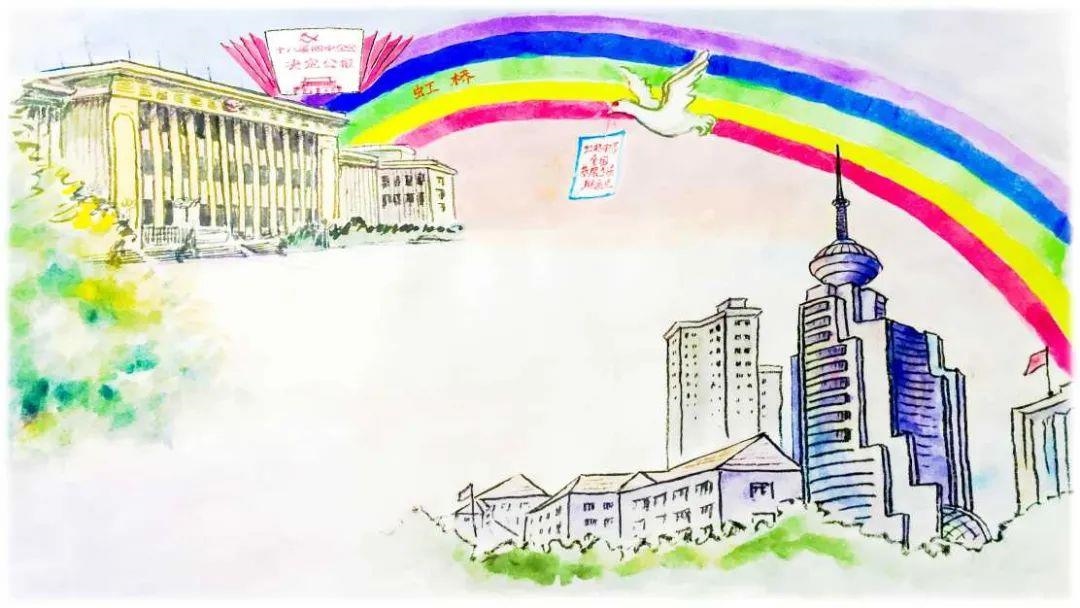 上海虹橋街道古北市民中心有幅特別的漫畫:一道絢麗的“彩虹橋”懸掛天空,這一頭是虹橋街道,那一頭是全國人大。一只白鴿把信從這頭捎到了那頭。