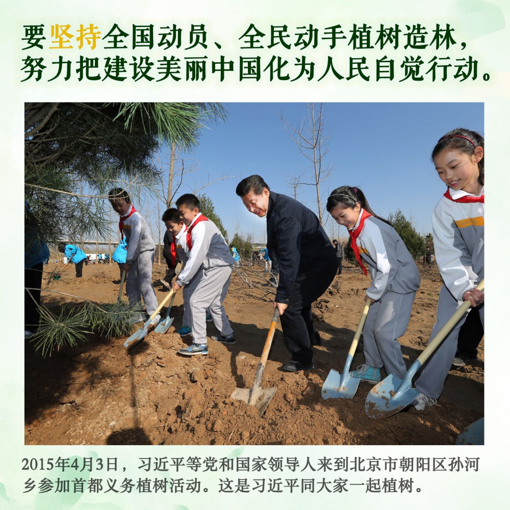 2013年4月,習(xí)近平當(dāng)選中共中央總書記后首次參加首都義務(wù)植樹活動(dòng)時(shí)就強(qiáng)調(diào):