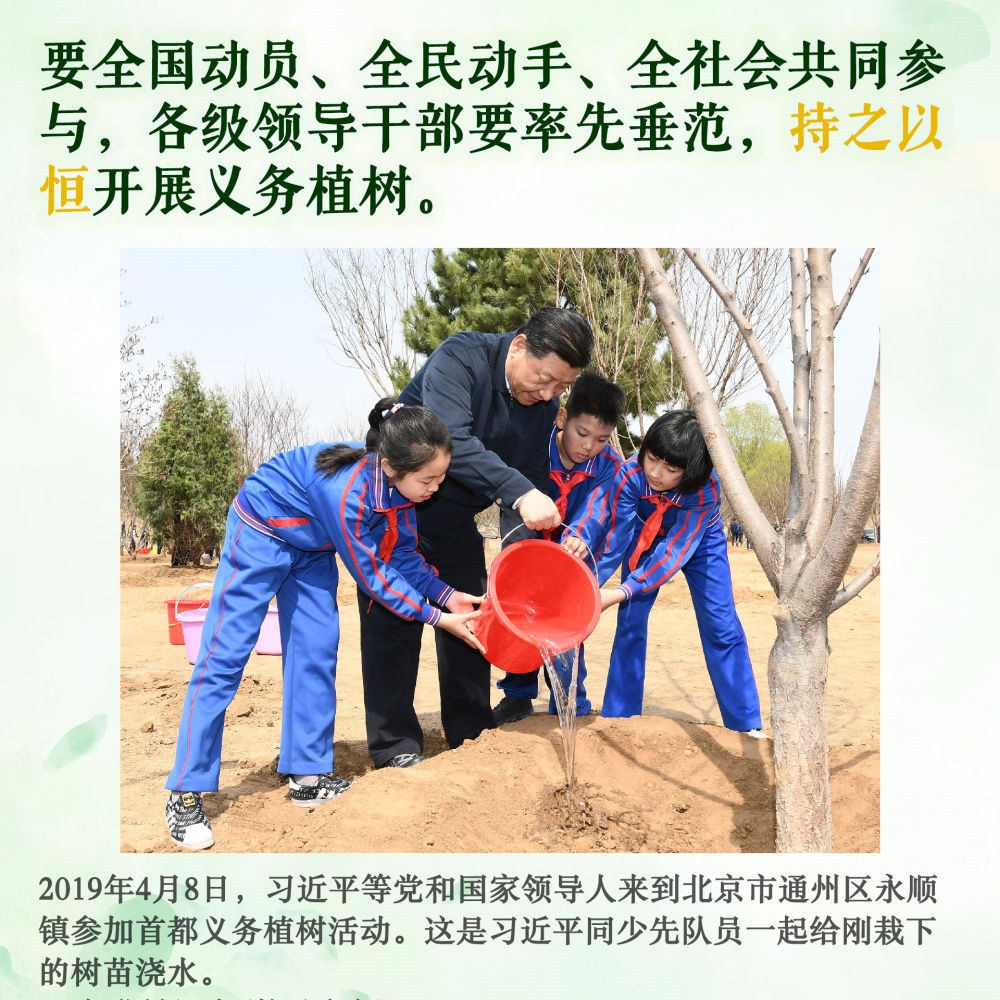身體力行,持之以恒。此后的11個(gè)春天,無論晴雨,總書記都抽出時(shí)間加入植綠隊(duì)伍,并對國土綠化事業(yè)提出殷殷囑托。堅(jiān)持,是12年來總書記反復(fù)強(qiáng)調(diào)的關(guān)鍵內(nèi)涵。
