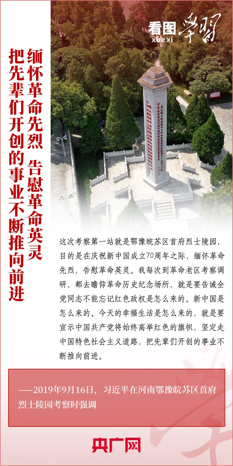 緬懷革命前輩,告慰先烈英靈。黨的十八大以來,習(xí)近平總書記多次在重大活動、赴地方調(diào)研時,或深情追憶革命前輩、英雄烈士,或向革命紀(jì)念場館禮敬鮮花、關(guān)心看望英烈親屬??倳浢銊畲蠹乙^承革命先烈遺志,把他們流血犧牲打下的紅色江山守護(hù)好、建設(shè)好,以實現(xiàn)中華民族偉大復(fù)興來告慰革命前輩和先烈。