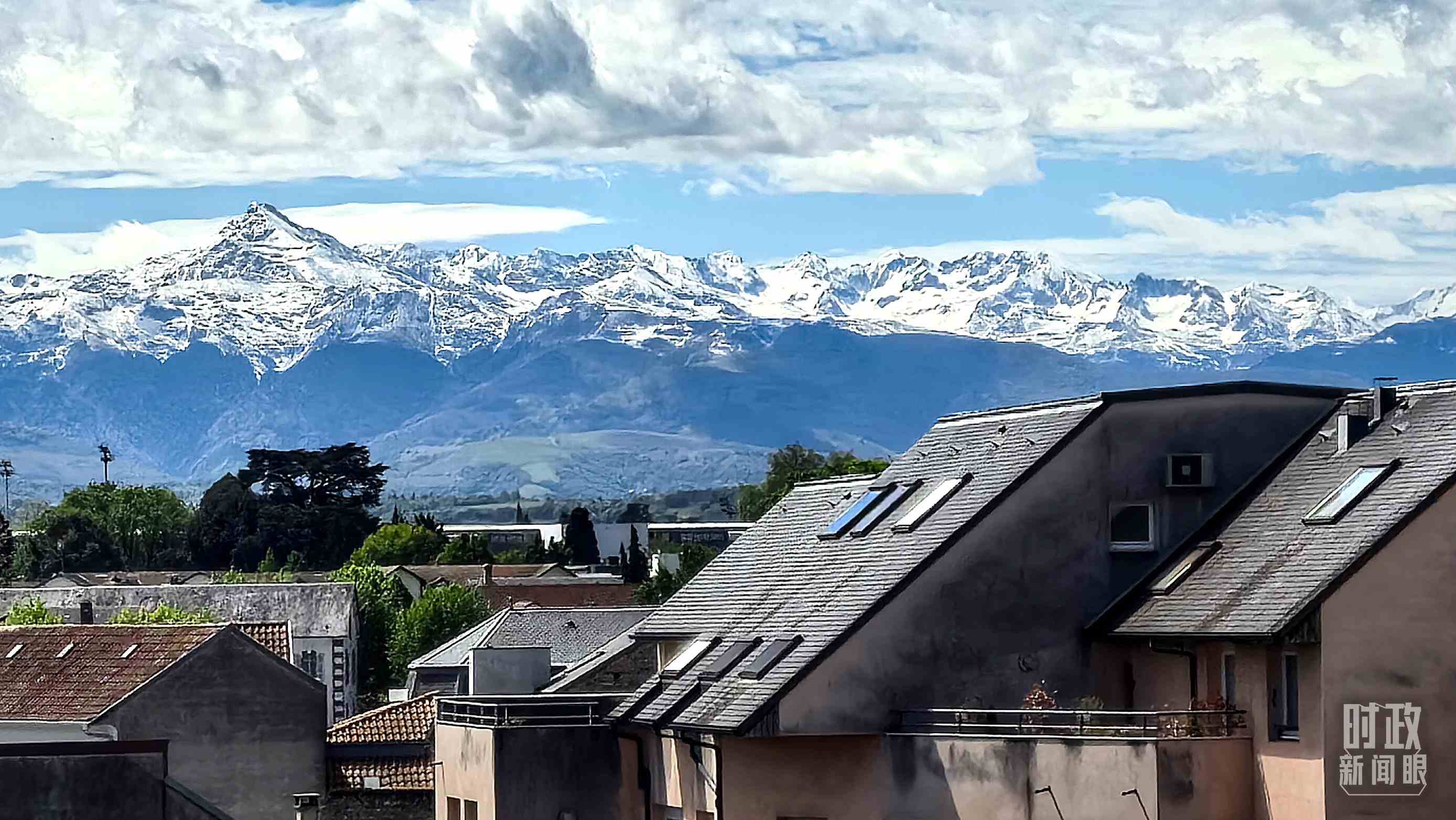 △從塔布市區(qū)遠(yuǎn)眺比利牛斯山。(總臺央視記者楊波拍攝)