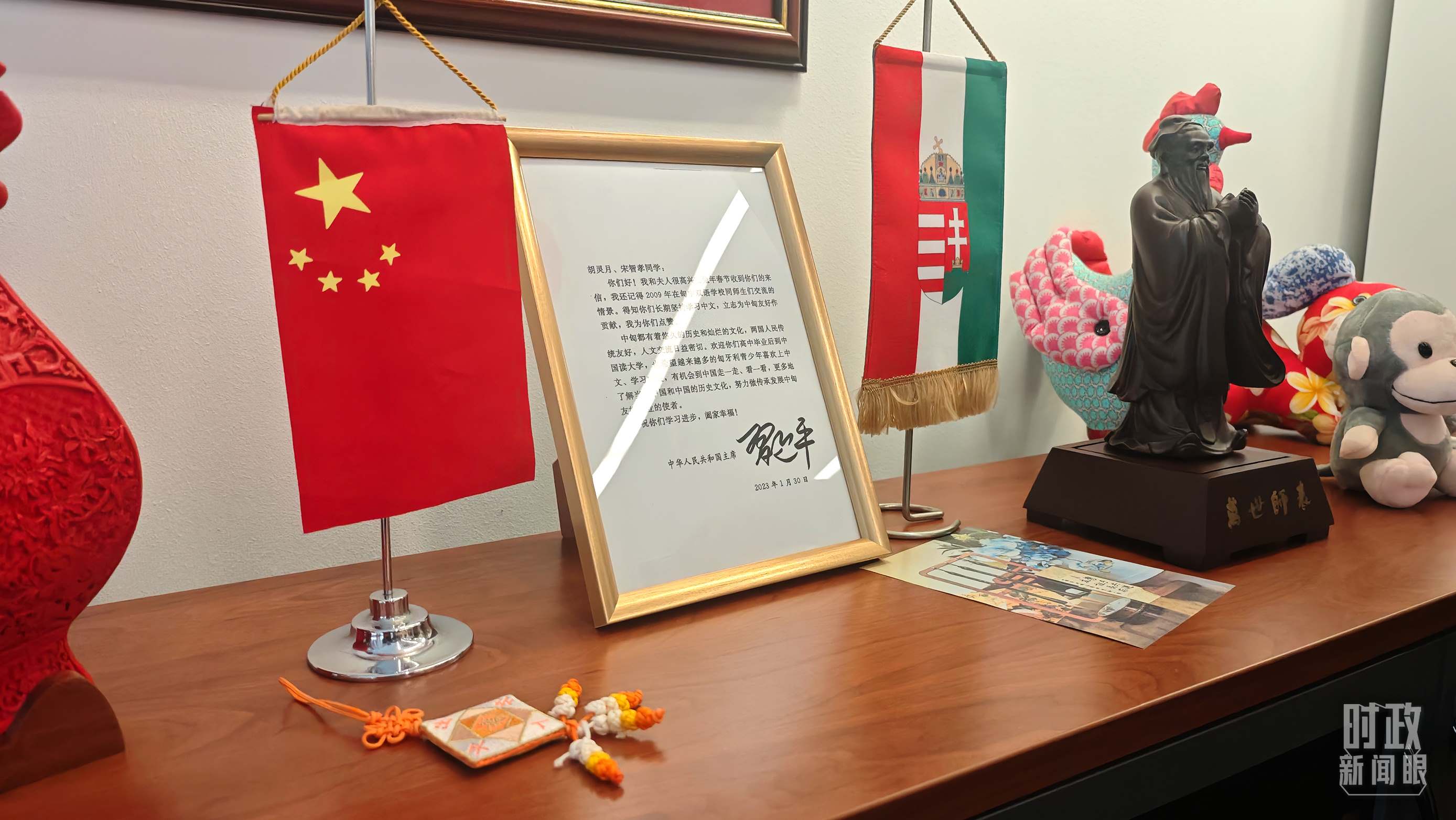△習(xí)主席給學(xué)生的回信珍藏在匈中雙語(yǔ)學(xué)校里。(總臺(tái)央視記者彭漢明拍攝)