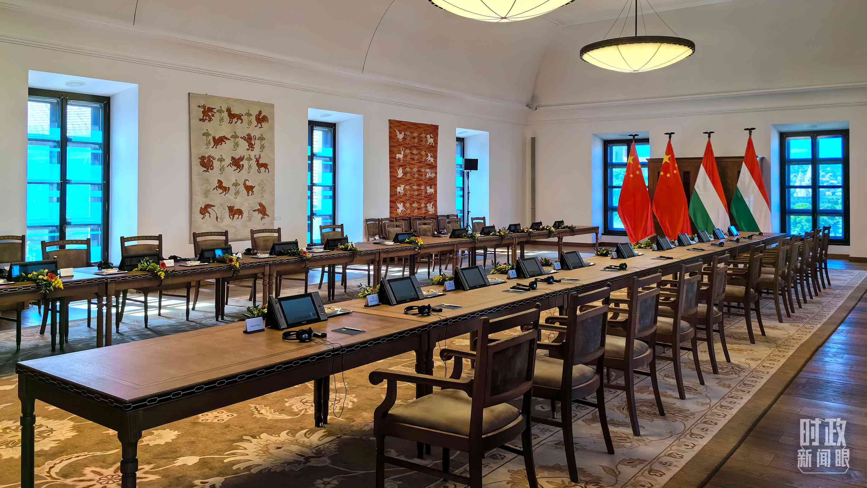 △習(xí)主席和歐爾班總理在這里舉行大范圍會(huì)談。這是會(huì)談開始前的現(xiàn)場(chǎng)。(總臺(tái)央視記者陸泓宇拍攝)