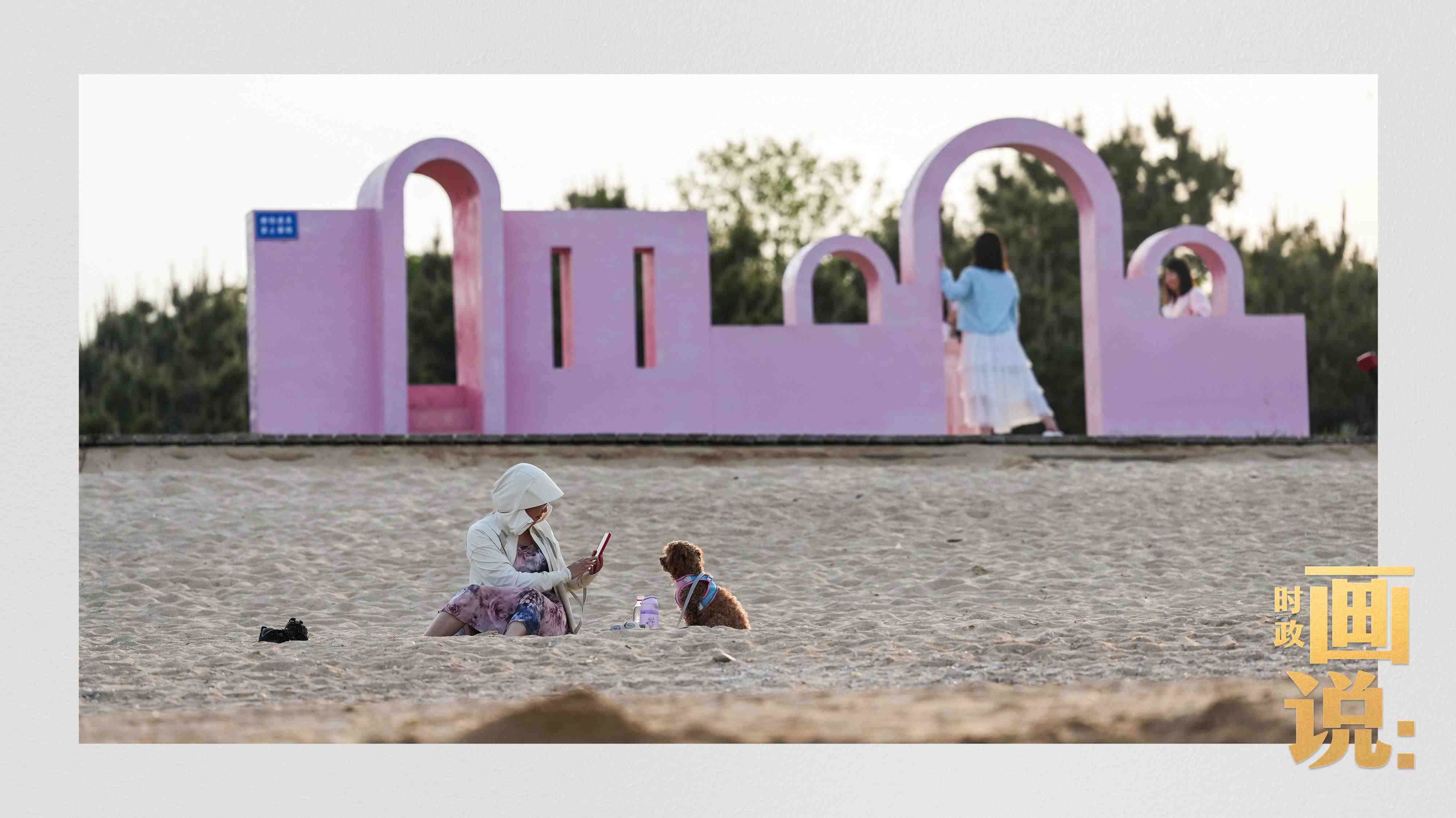 △日照陽光海岸綠道上的萬平口景區(qū),一對游客在海浪中翩然起舞。