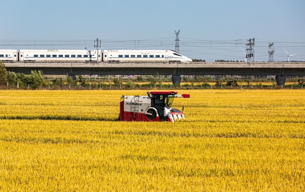 △2024年9月18日,黑龍江省哈爾濱市阿城區(qū)料甸街道三家子屯,農(nóng)民正在收割水稻。