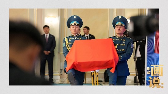 當(dāng)?shù)貢r間3日,國家主席習(xí)近平在阿斯塔納出席哈薩克斯坦總統(tǒng)托卡耶夫在總統(tǒng)府舉行的歡迎儀式。習(xí)近平主席乘車抵達(dá)時,托卡耶夫總統(tǒng)熱情迎接,以最高禮儀歡迎習(xí)近平主席對哈薩克斯坦進(jìn)行國事訪問。