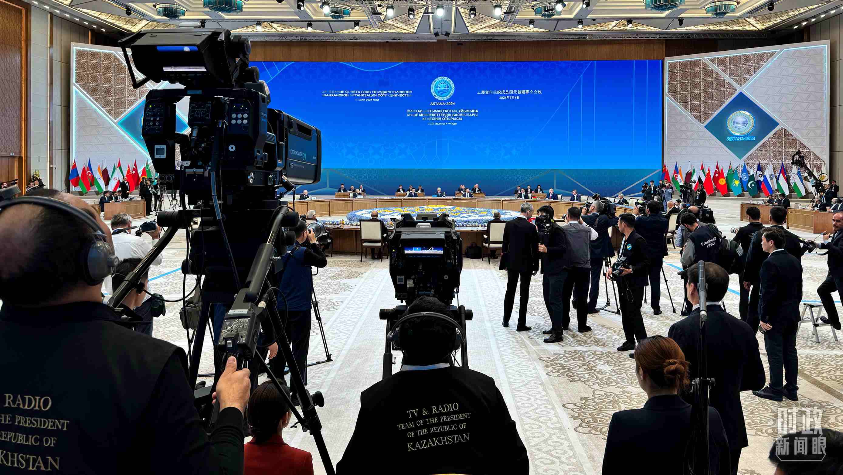 △當(dāng)天下午,“上海合作組織+”阿斯塔納峰會(huì)在這里舉行,這是會(huì)議開始前。(總臺央視記者程鋮拍攝)