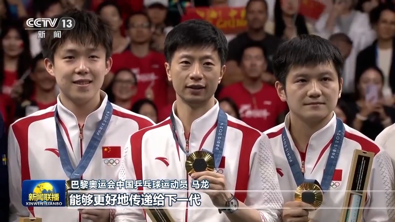 巴黎奧運(yùn)會中國乒乓球運(yùn)動員 馬龍:首先能夠在新中國成立75周年之際,不光是我自己拿到第六枚奧運(yùn)金牌,同時(shí)能夠中國代表團(tuán)在海外也取得最好成績,我還是非常開心,也非常榮幸。作為我來說,希望能夠把自己的一些比賽經(jīng)驗(yàn)以及一些對于乒乓球項(xiàng)目的理解,能夠更好地傳遞給下一代,然后希望他們能夠繼續(xù)為我們中國體育事業(yè)獻(xiàn)出自己的一份力量。