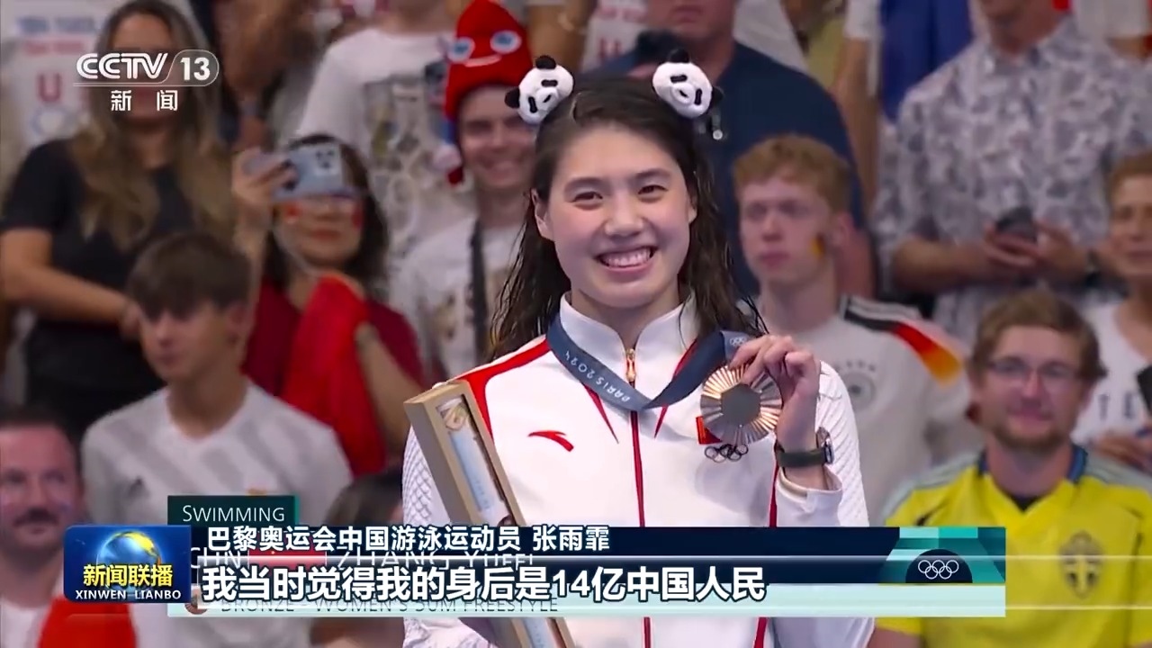 巴黎奧運(yùn)會中國游泳運(yùn)動員 張雨霏:沒有想到他當(dāng)時(shí)走在我們跟前,每一名運(yùn)動員的成績和名字他都記住了,然后就是親切地與我們交談,每個(gè)人交談的內(nèi)容都不一樣。我覺得生在中國真好,特別是在賽場上的時(shí)候,我沒有拿到冠軍,但是我看見一面面五星紅旗,他們依然在為我加油吶喊,安慰我,我當(dāng)時(shí)覺得我的身后是14億中國人民。