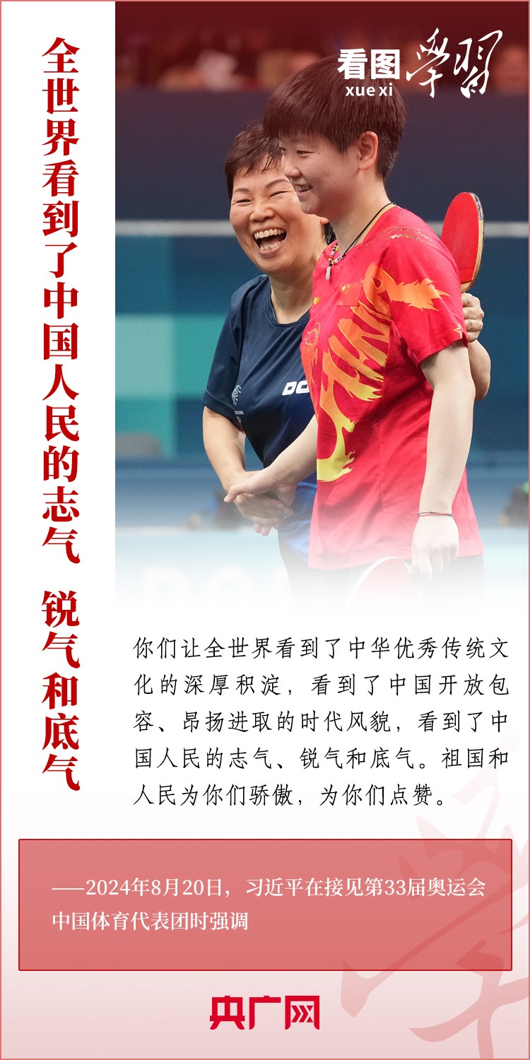 “祖國和人民為你們驕傲,為你們點(diǎn)贊?!?月20日,習(xí)近平總書記在人民大會(huì)堂接見第33屆奧運(yùn)會(huì)中國體育代表團(tuán)并發(fā)表重要講話??倳浉叨瓤隙ㄖ袊w育代表團(tuán)取得的優(yōu)異成績,贊揚(yáng)他們充分彰顯了新時(shí)代中國力量、生動(dòng)詮釋了新時(shí)代中國精神、充分展現(xiàn)了新時(shí)代中國形象,勉勵(lì)大家戒驕戒躁、再接再厲,為建設(shè)體育強(qiáng)國再立新功。一起來學(xué)習(xí)!
