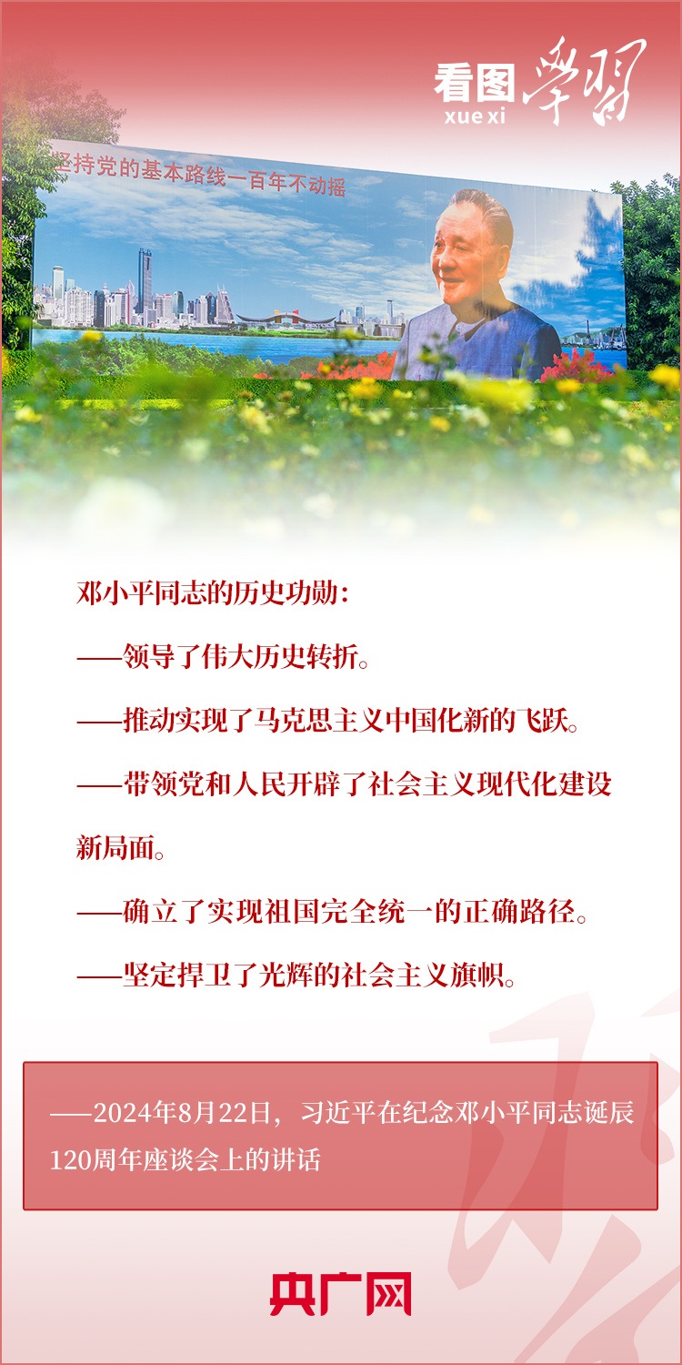 8月22日,習(xí)近平總書記在紀(jì)念鄧小平同志誕辰120周年座談會(huì)上發(fā)表重要講話指出,鄧小平同志的歷史功勛是全方位的、開創(chuàng)性的,對中國和世界的影響是深刻的、長遠(yuǎn)的??倳洀?qiáng)調(diào),對鄧小平同志最好的紀(jì)念,就是把他開創(chuàng)的中國特色社會(huì)主義事業(yè)繼續(xù)推向前進(jìn)。我們要緊緊圍繞以中國式現(xiàn)代化全面推進(jìn)強(qiáng)國建設(shè)、民族復(fù)興偉業(yè)這個(gè)中心任務(wù),繼往開來,奮發(fā)進(jìn)取。一起來學(xué)習(xí)!