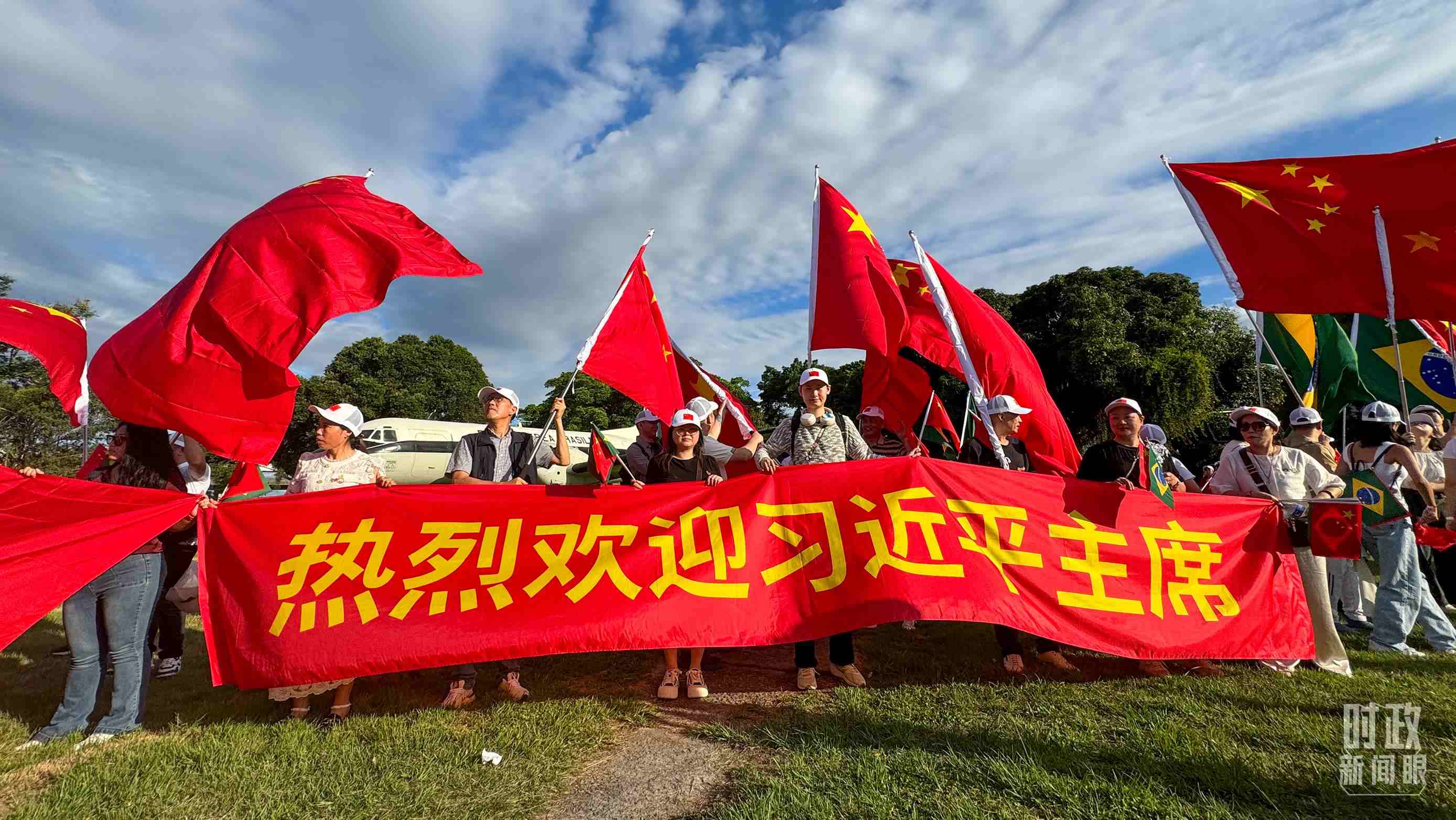 △巴西各界人士熱烈歡迎習主席到訪。(總臺記者趙怡彬拍攝)