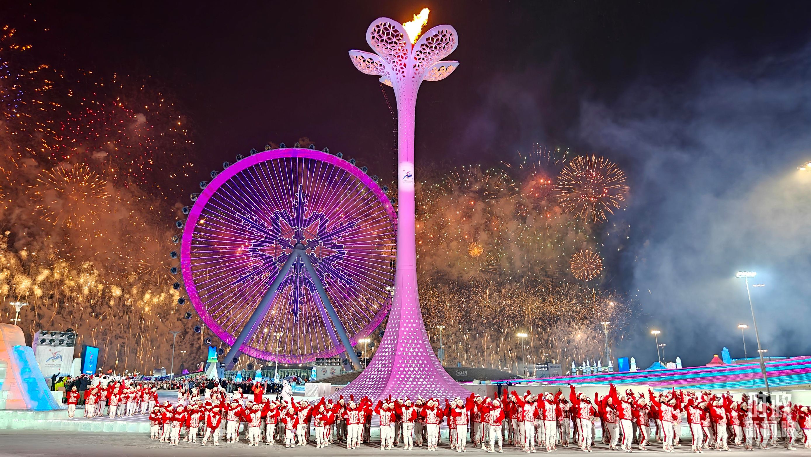 △哈爾濱亞冬會主火炬點(diǎn)燃。(總臺記者任秋宇拍攝)