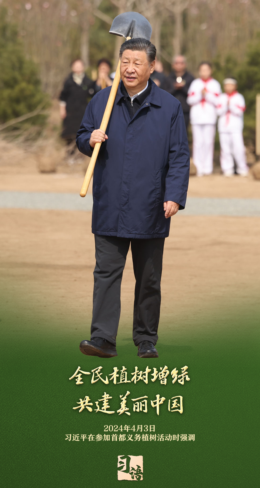 “植樹造林是一件很有意義的事情,是一項功在當代、利在千秋的崇高事業(yè),要一以貫之、持續(xù)做下去?!弊?013年以來的13個春天里,無論晴雨,習近平總書記都會拿起鐵鍬,與干部群眾一起參加首都義務(wù)植樹活動。鏟土造坑、培土圍堰、提水澆灌,總書記身體力行種下綠色的希望,對擴綠興綠護綠、建設(shè)美麗中國提出明確要求。一起學習。