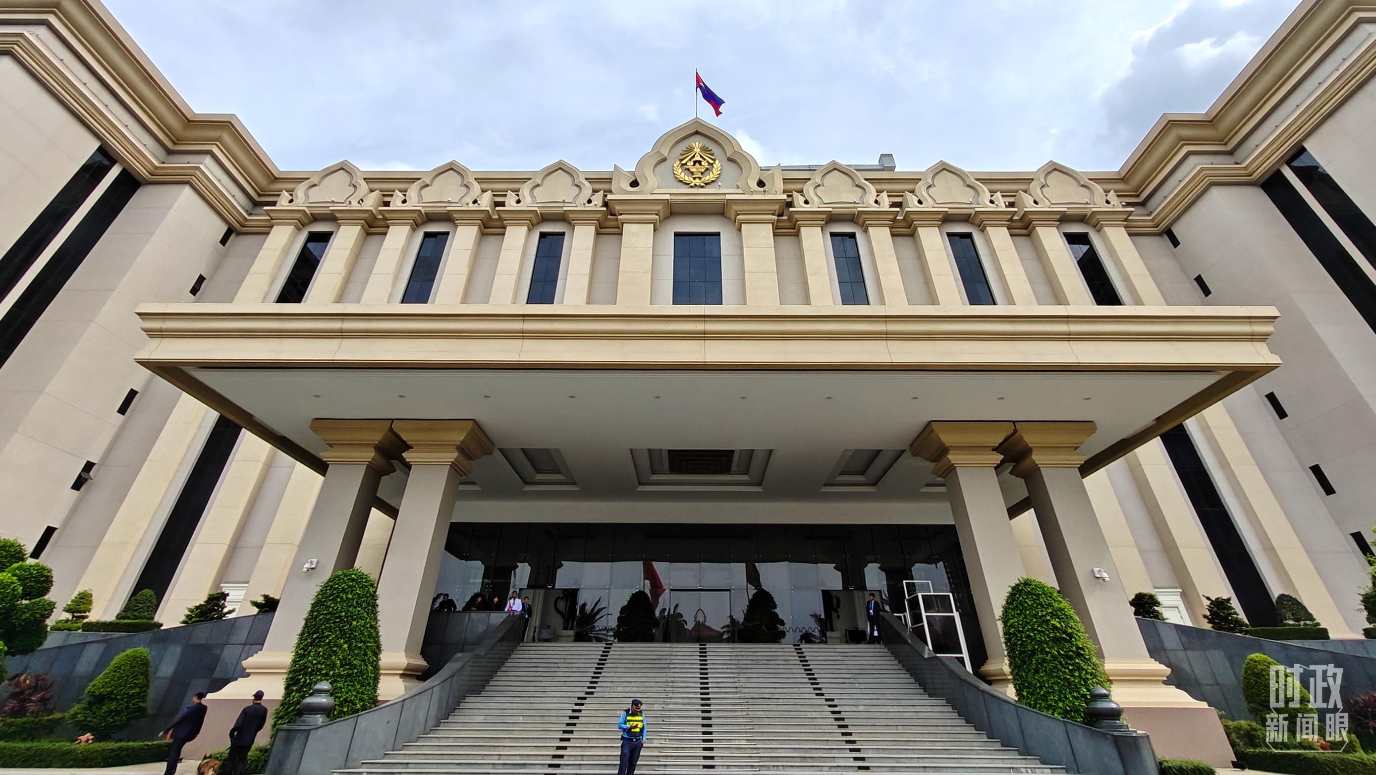 △金邊和平大廈,習(xí)主席同洪森、洪瑪奈的會(huì)見(jiàn)會(huì)談在這里舉行。(總臺(tái)央視記者范一鳴拍攝)