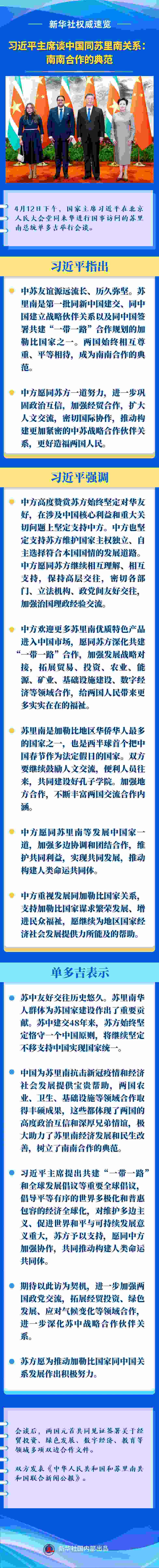 習(xí)近平指出,中國(guó)同坦桑尼亞傳統(tǒng)友誼深厚。近年來,兩國(guó)關(guān)系高水平發(fā)展,雙方在涉及彼此核心利益和重大關(guān)切問題上相互支持,各領(lǐng)域務(wù)實(shí)合作成果豐碩。我高度重視中坦關(guān)系發(fā)展,愿同哈桑總統(tǒng)一道努力,落實(shí)好中非合作論壇北京峰會(huì)成果,推動(dòng)中坦全面戰(zhàn)略合作伙伴關(guān)系不斷邁上新臺(tái)階,為構(gòu)建新時(shí)代全天候中非命運(yùn)共同體作出更大貢獻(xiàn)。