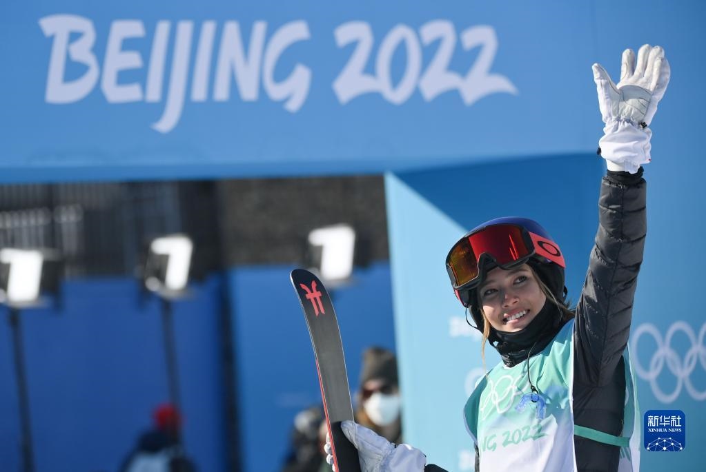 2月7日,中國選手谷愛凌在比賽后揮手致意。