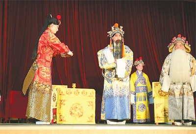 外國游客在陜西省潼關(guān)縣黃河古渡口景區(qū)體驗(yàn)黃河老腔表演。彭一鵬攝(人民圖片)
