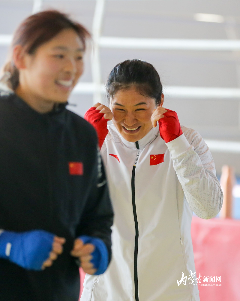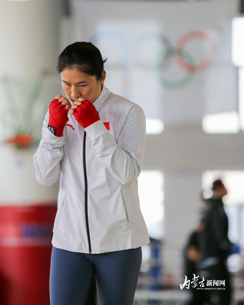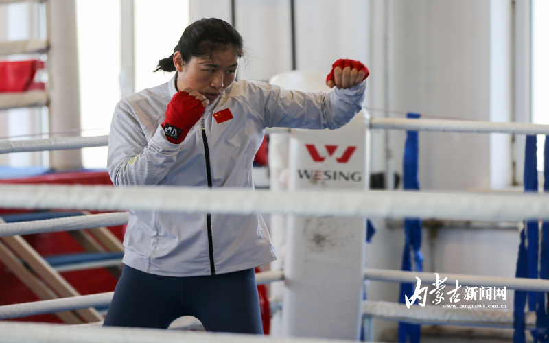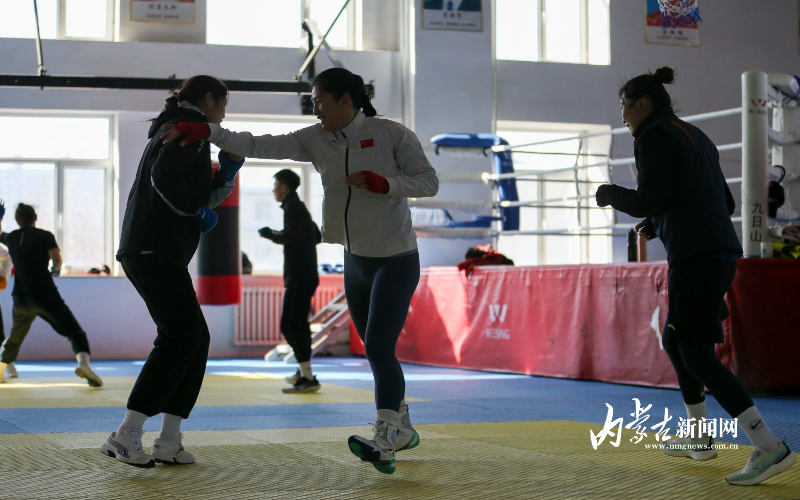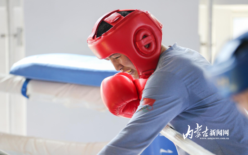 當(dāng)日,記者在拳擊館內(nèi)看到,在訓(xùn)練中李倩腳步輕盈,汗珠在額頭滑落。她戴上拳套,走向沙袋,一記記重拳砸出,發(fā)出沉悶的“砰”聲。內(nèi)蒙古女子拳擊隊的數(shù)十名拳手正在同時訓(xùn)練,沙袋晃動,呼吸急促,空氣中彌漫著汗水與堅持的味道。“防守,腳下要穩(wěn)!”內(nèi)蒙古拳擊隊總教練哈達巴特爾的聲音在空間回蕩。李倩的訓(xùn)練格外嚴(yán)格。除了常規(guī)力量訓(xùn)練、反應(yīng)訓(xùn)練和體能循環(huán),她還要進行一對一的與男拳手的實戰(zhàn)模擬,幾次交鋒下來,氣息都愈發(fā)急促。但李倩沒有退縮,反而越打越穩(wěn),腳步靈活,出拳干凈利落。