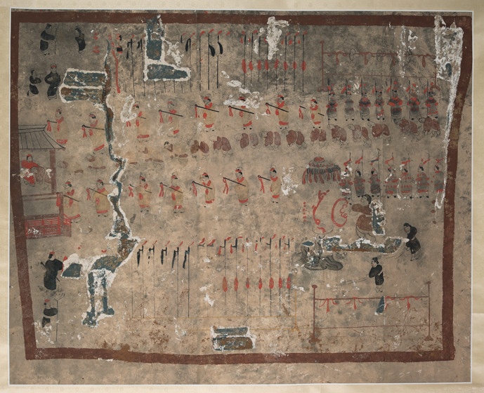他,眼神堅(jiān)定,峨冠博帶,身著華服位于畫(huà)面中央,周圍有疾馳的駿馬、彪悍的武士、精彩奇絕的樂(lè)舞百戲……這些畫(huà)面看上去遙遠(yuǎn)而陌生。